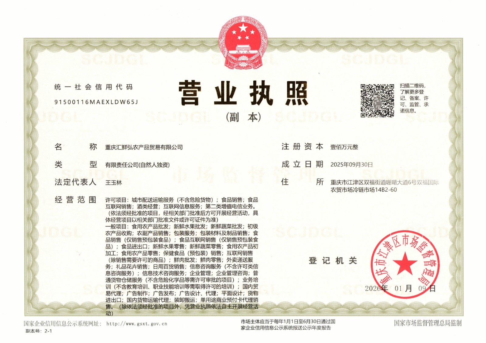 重庆汇鲜弘农产品贸易有限公司